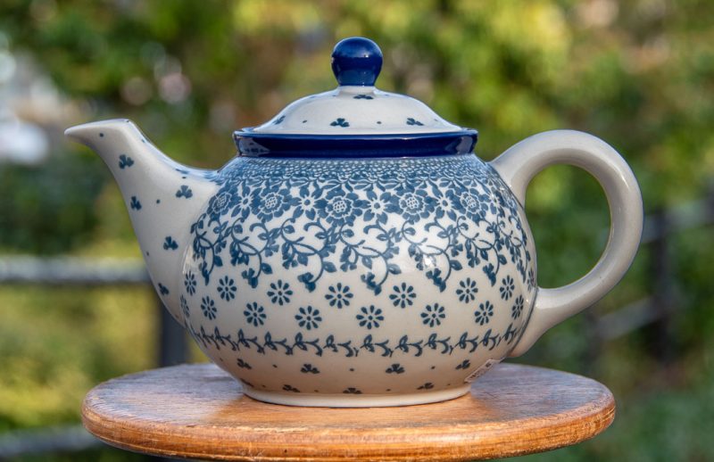 These teapots from the long established Polish Pottery manufactures in Boleslawiec come in many different patterns from the classic polkadot blue spotty pattern to the colourful artistic patterns.