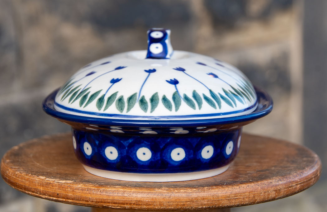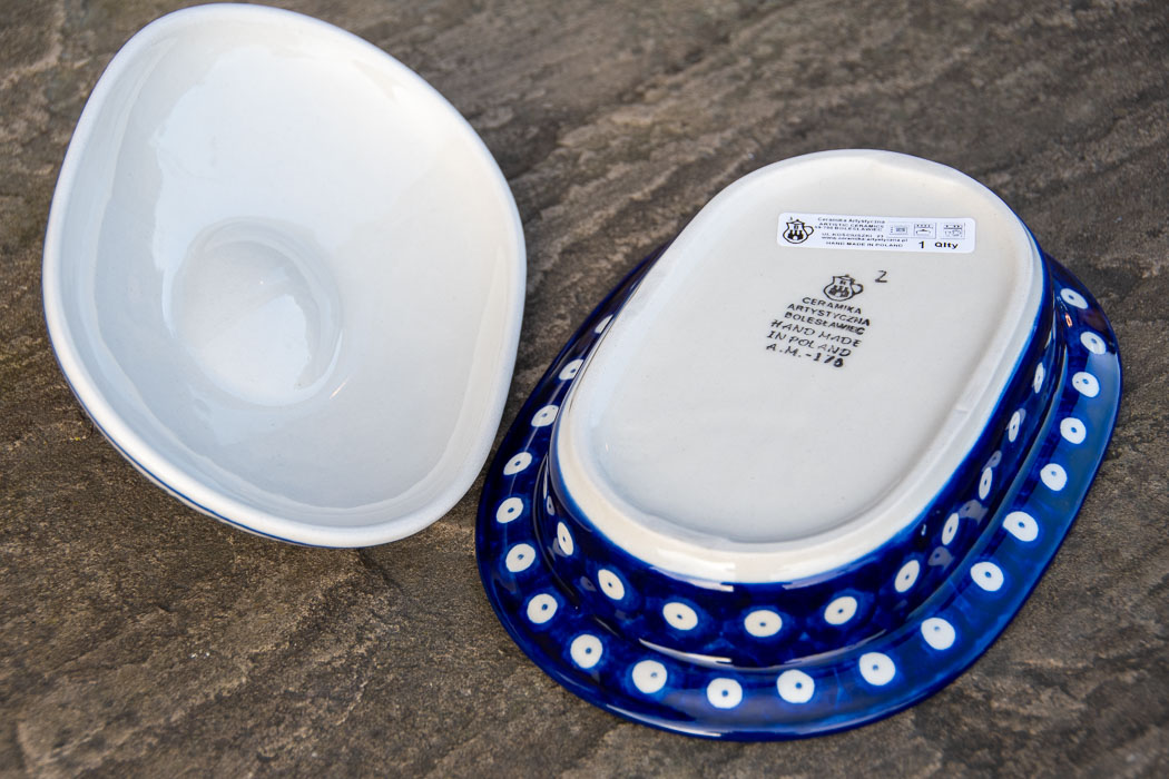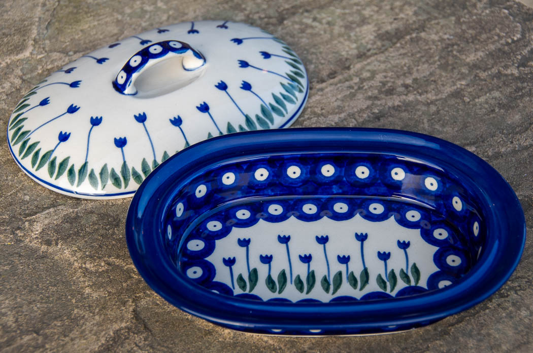 Tulip Spot Oval Dish with Lid by Ceramika Artystyczna Boleslawiec.