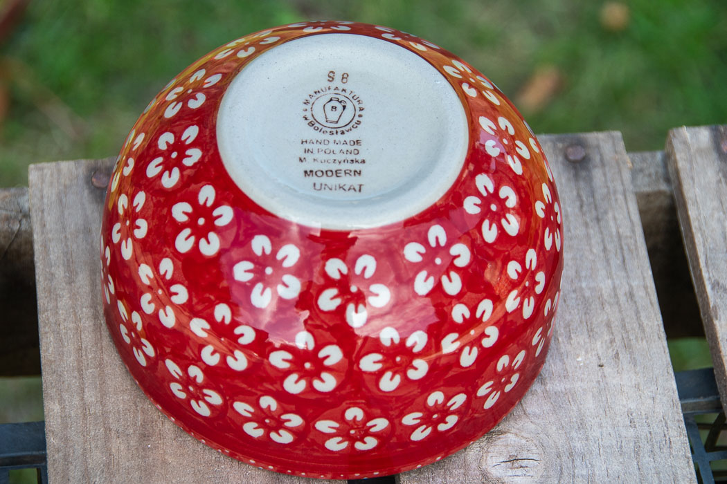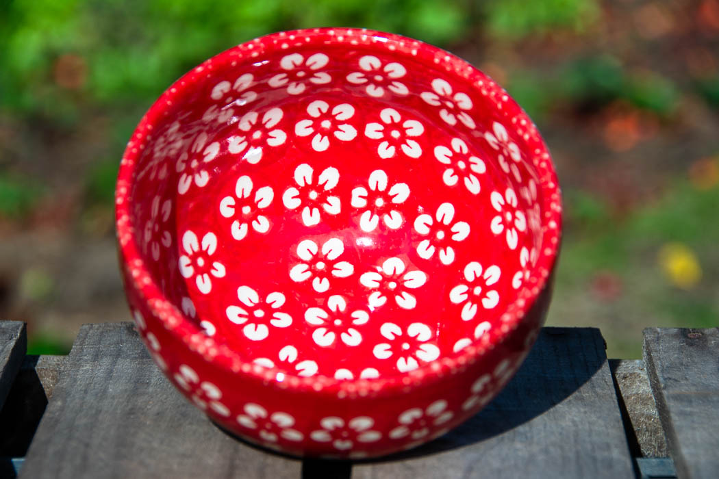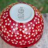White Flowers on Red Cereal Bowl by Ceramika Manufaktura.