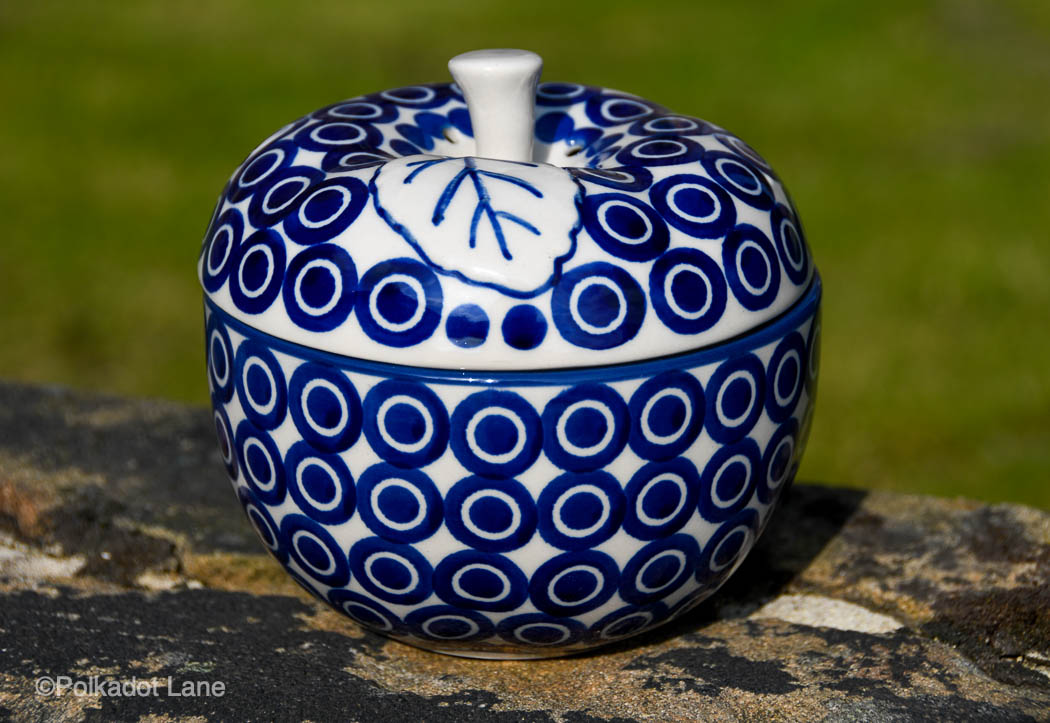 Polish Pottery Blue Circles Pattern Apple Baker by Ceramika Artystyczna.