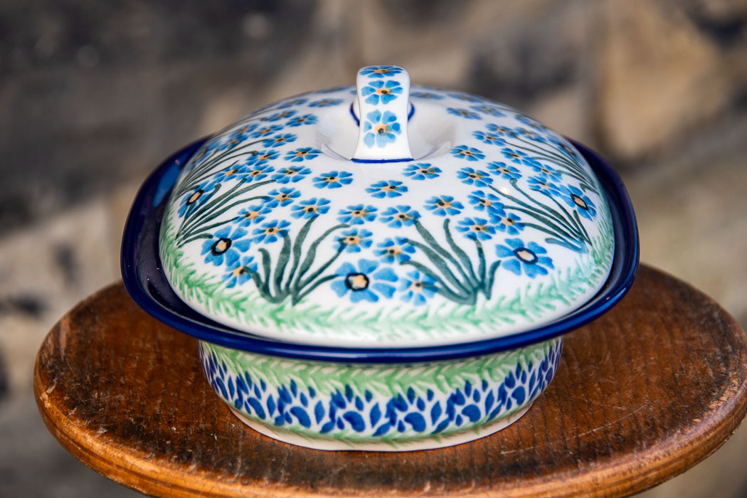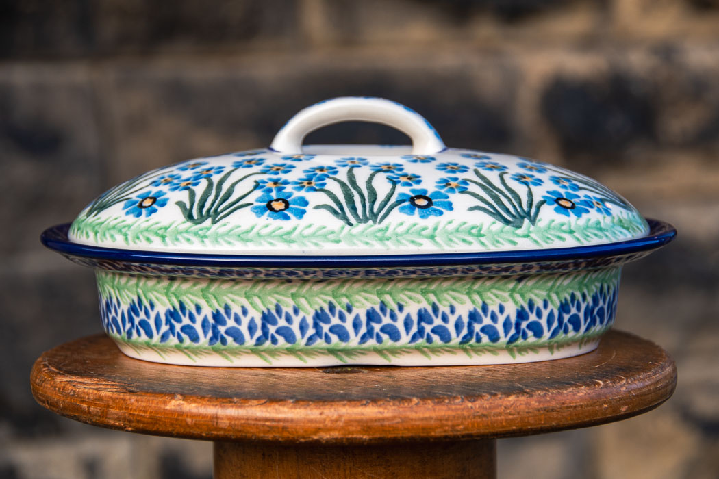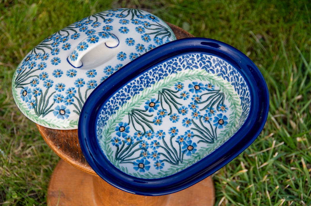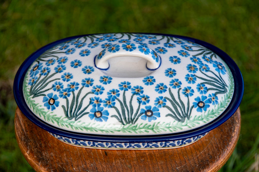 Forget Me Not pattern Oval Dish with Lid by Ceramika Artystyczna.