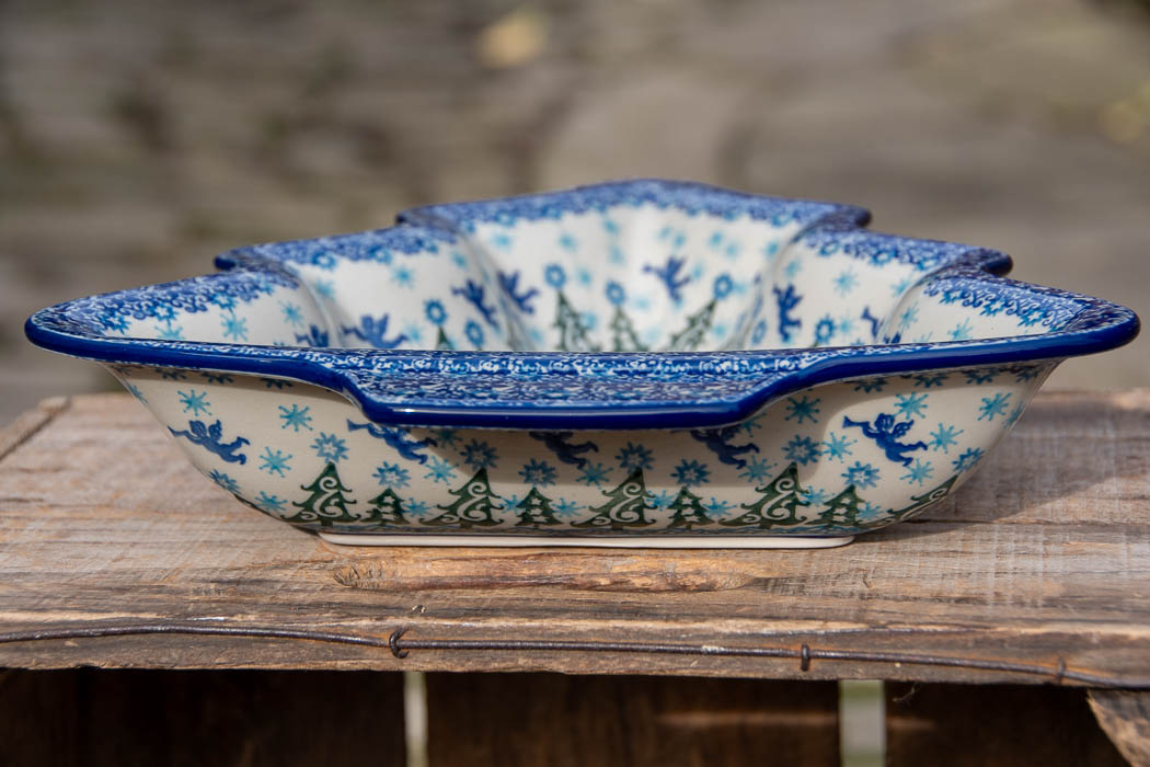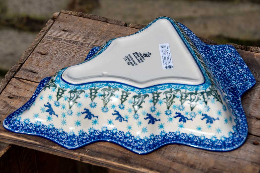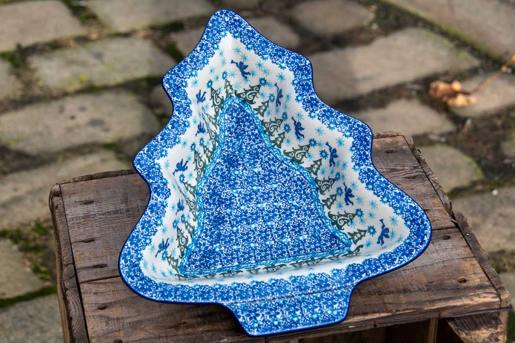 Large Tree Shaped Dish in Cherub Christmas pattern by Ceramika Artystyczna.