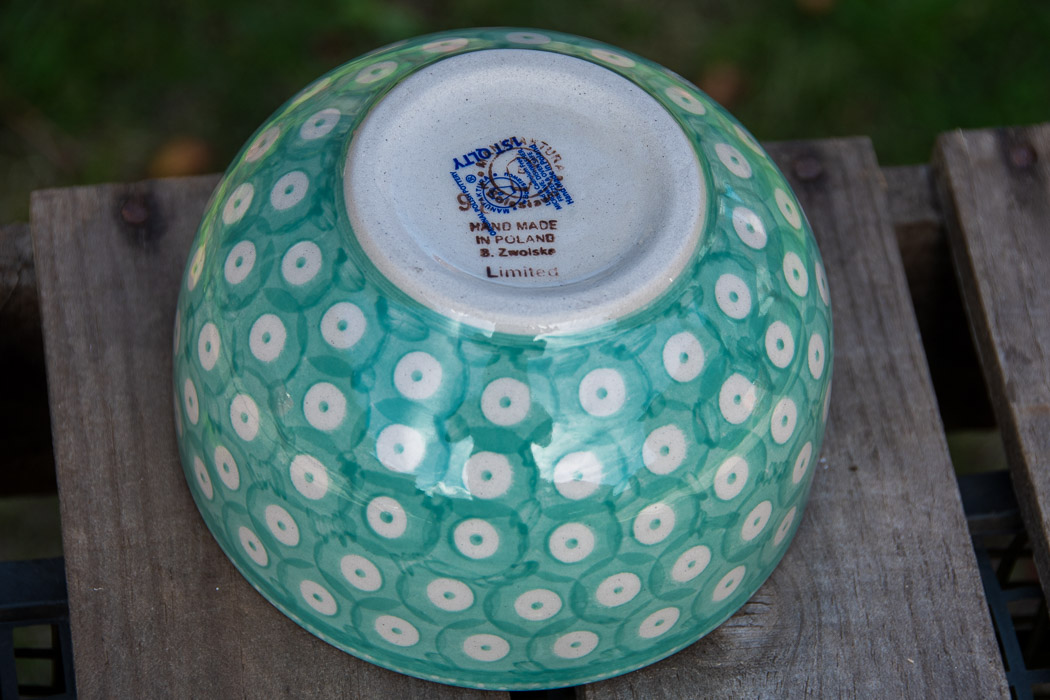 Cereal Bowl Mint Green Polkadot pattern by Ceramika Manufaktura.