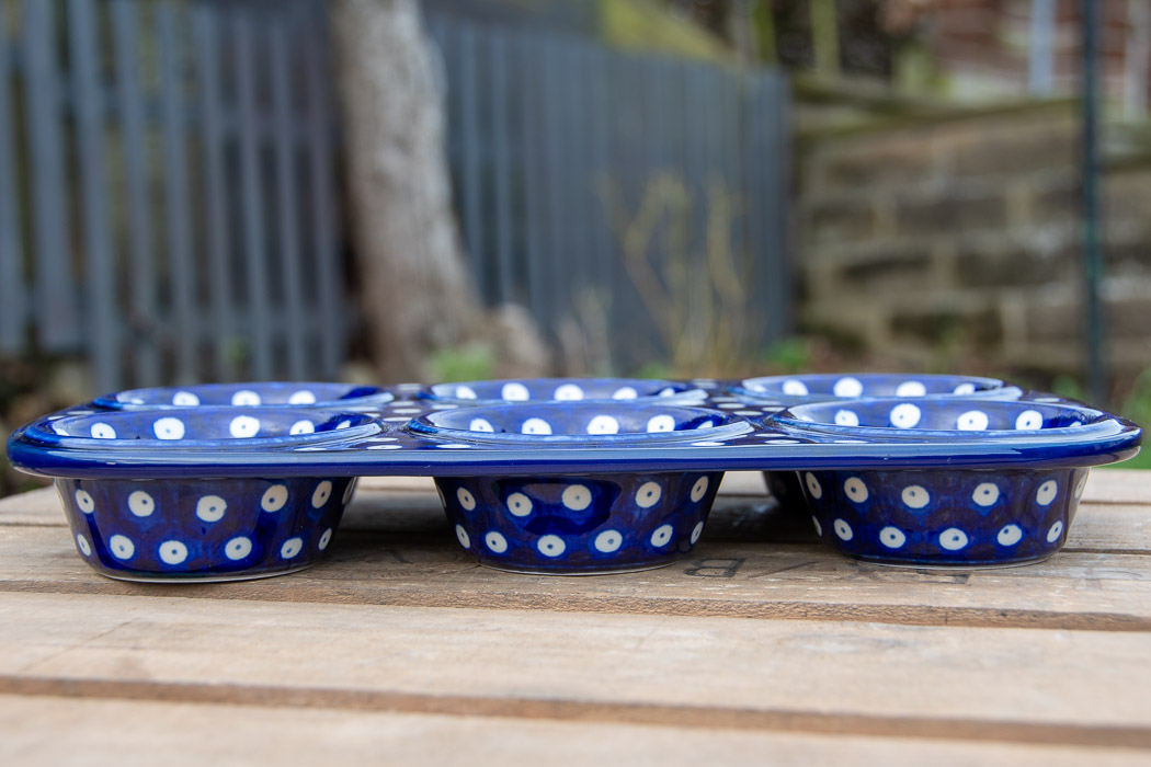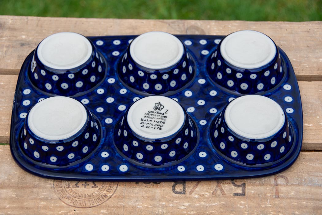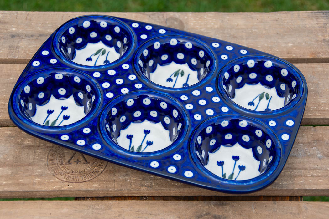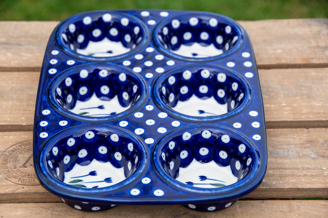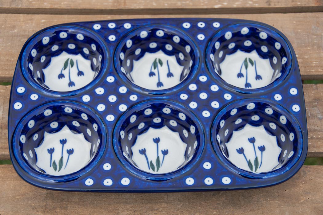 Tulip Spot Yorkshire Pudding Bun Tin Dish by Ceramika Artystyczna Polish Pottery.