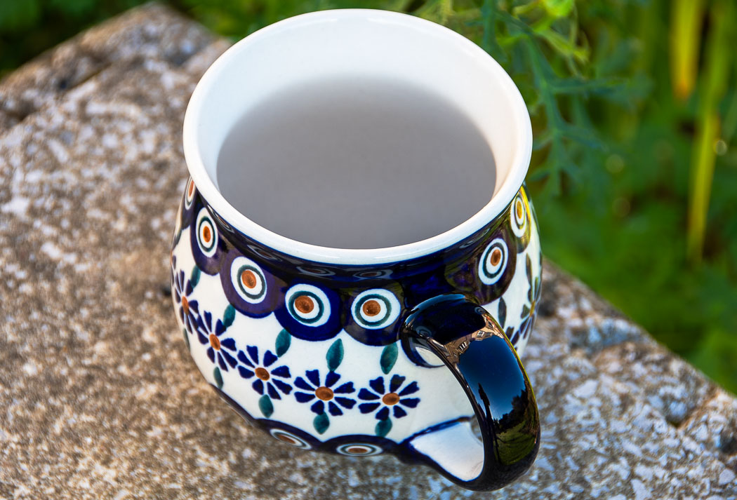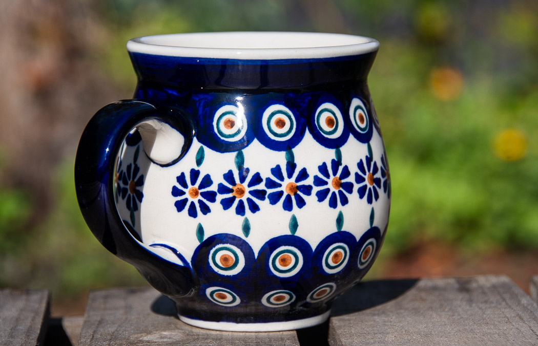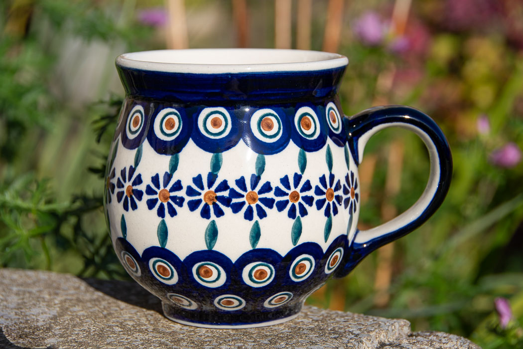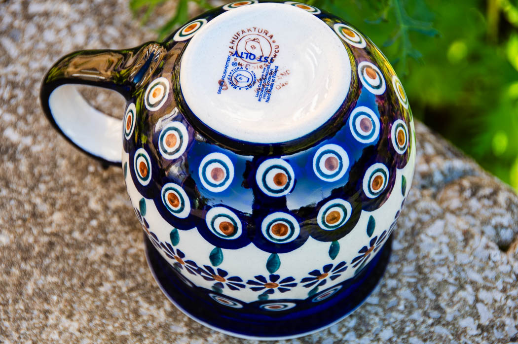 Peacock Daisy Polish Pottery Large Mug by Ceramika Manufaktura.