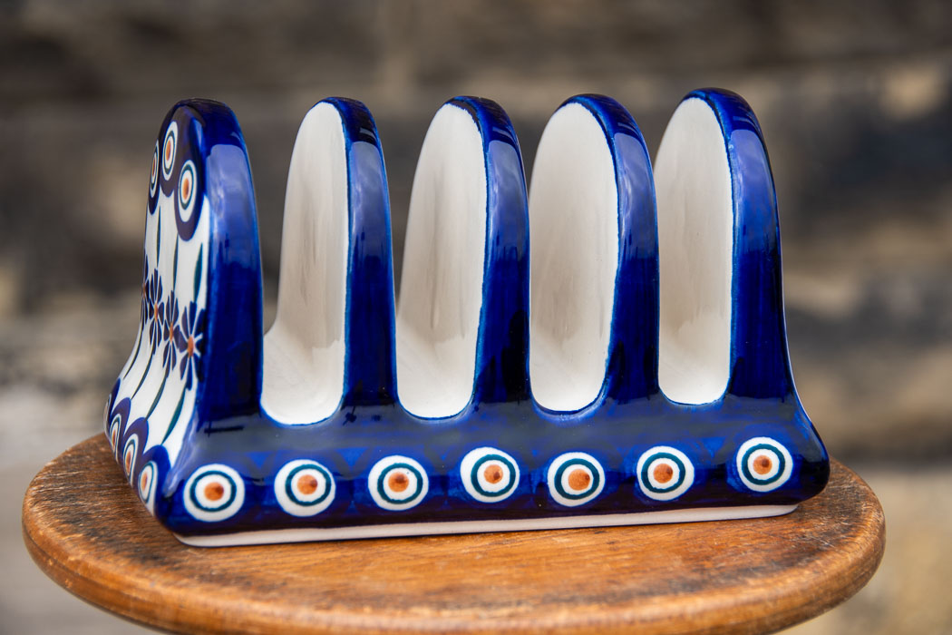 Peacock Daisy Polish Pottery Toast Rack by Ceramika Manufaktura.