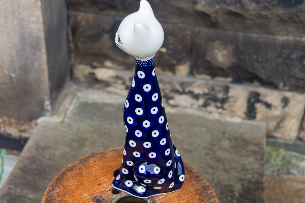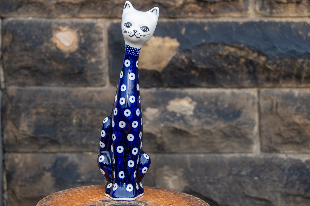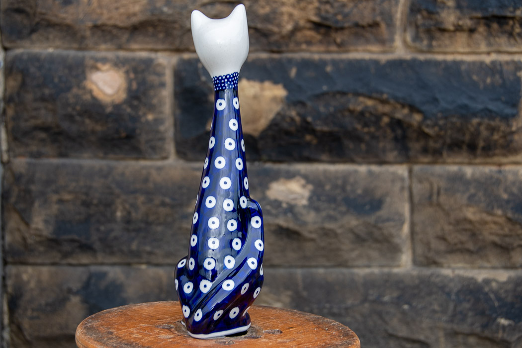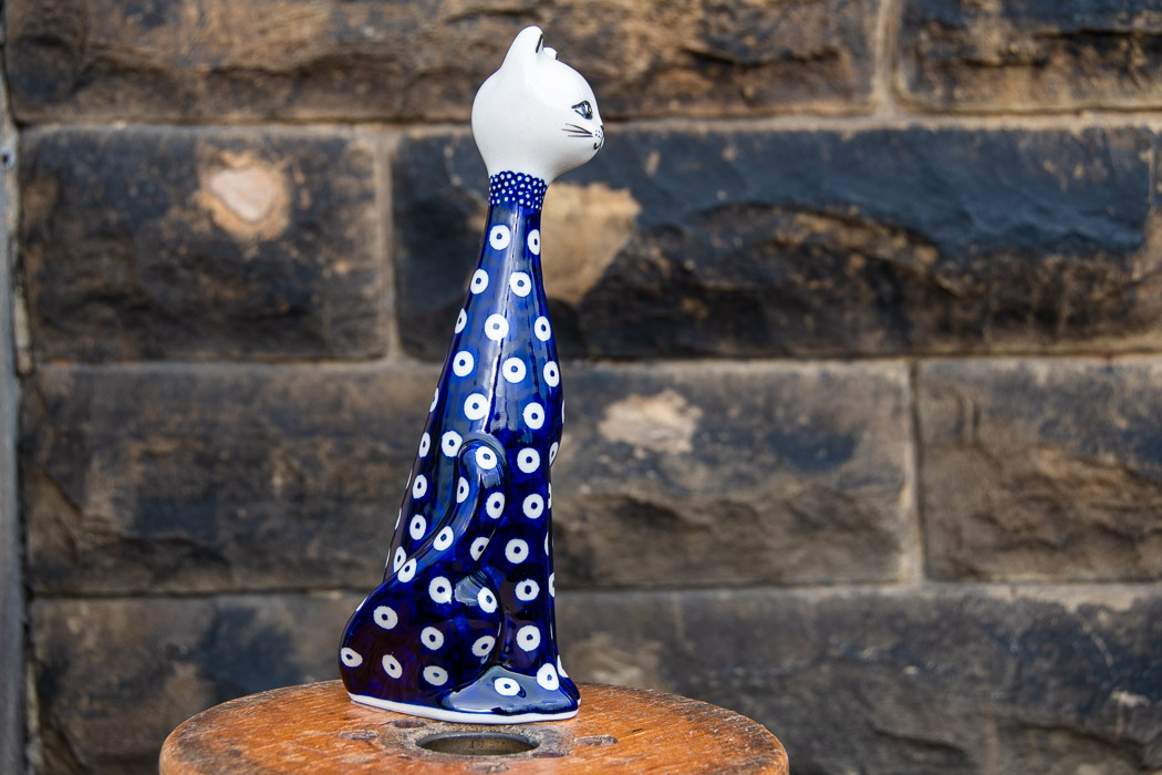 Polkadot Blue Tall Cat by Ceramika Manufaktura.