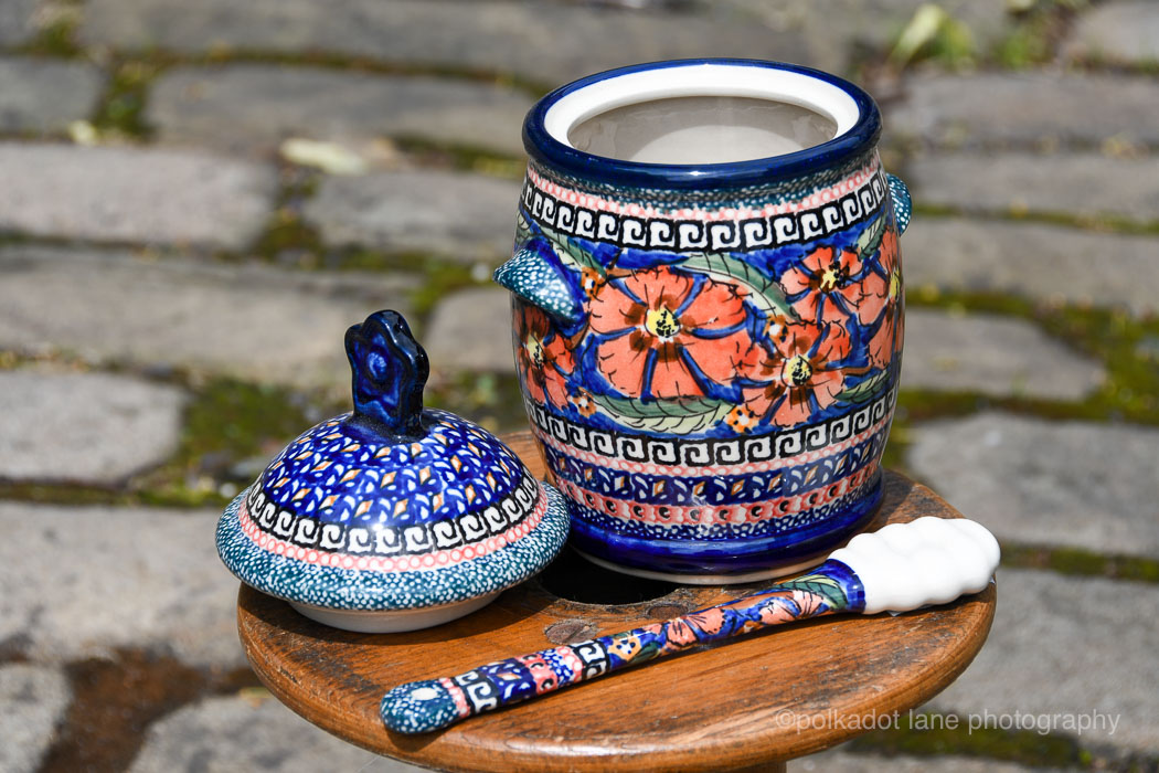 Poppy Honey Pot with matching Ceramic Poppy Honey Drizzler by Ceramika Zaklady.
