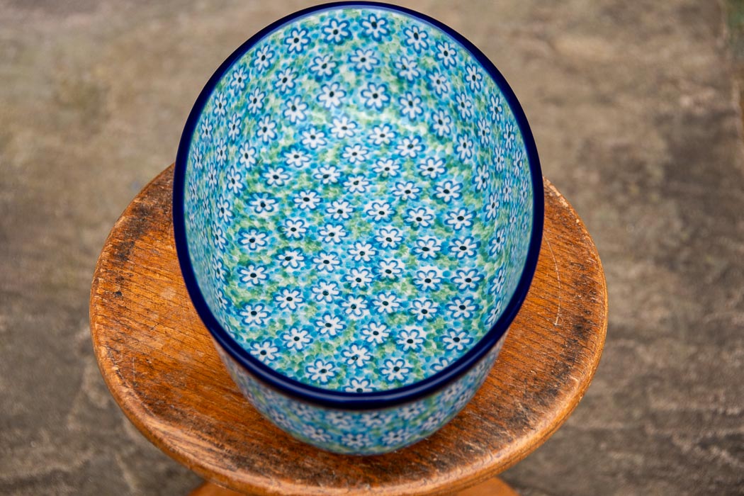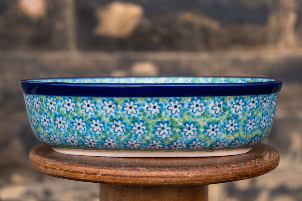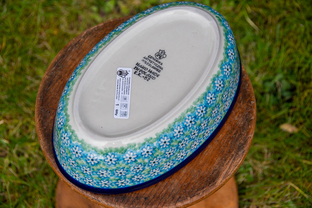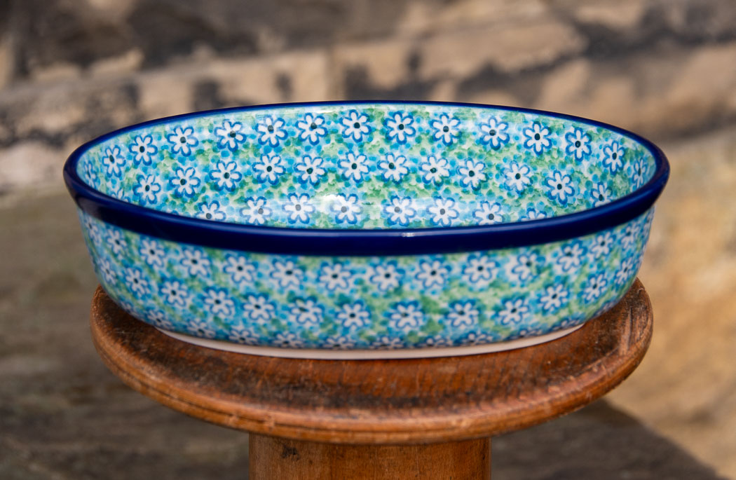 Turquoise Daisy Oval Oven Dish medium size by Ceramika Artystyczna.