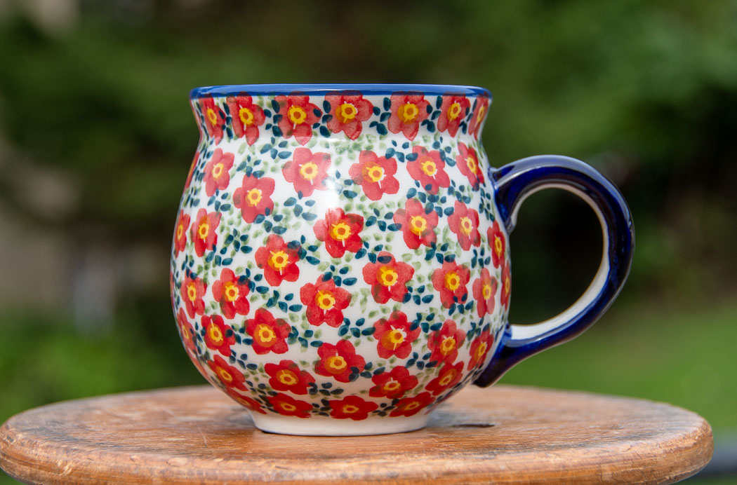 Ditzy Red Flowers Unikat pattern Mug Medium Size by Ceramika Manufaktura.