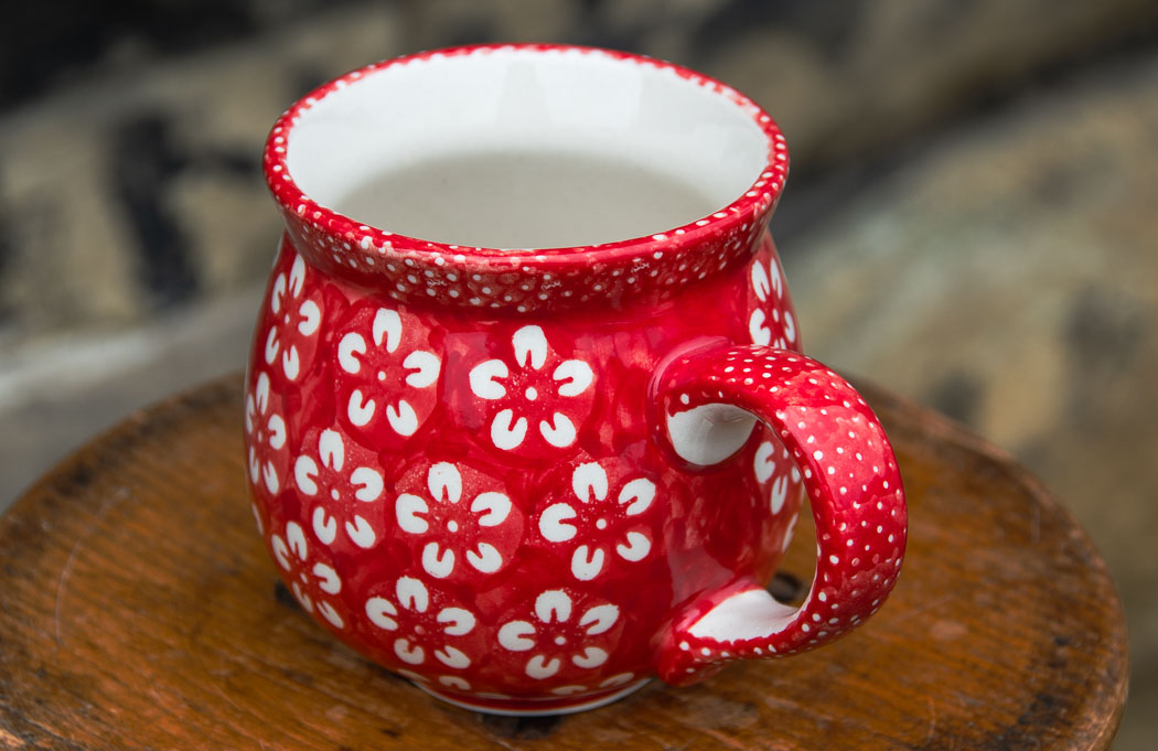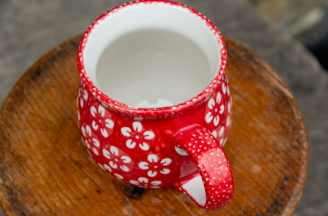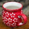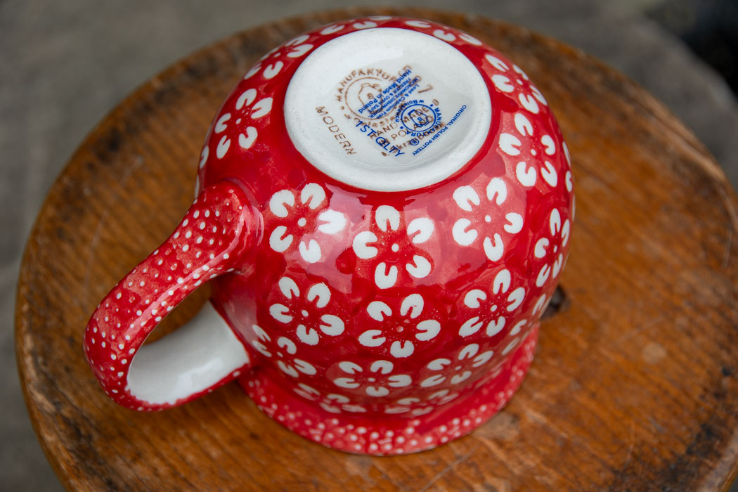 White Flowers on Red Medium size Mug by Ceramika Manufaktura.